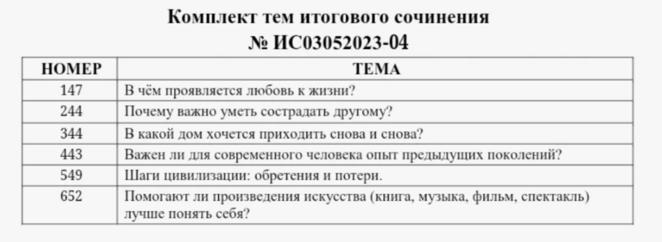 В каждый комплект тем итогового сочинения будет включено по две темы из каждого раздела банка: